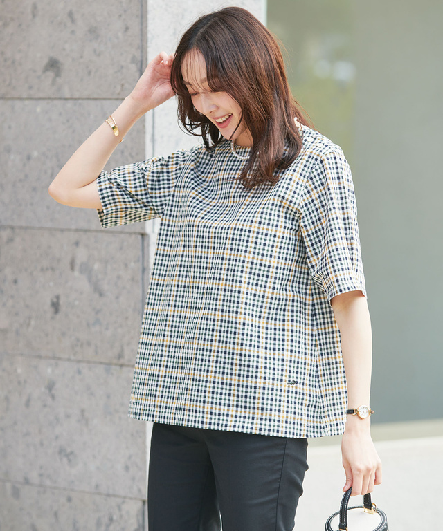 タータンチェックと袖口のダーツがおしゃれで、アイロン不要のサッカー地も気に入りました。