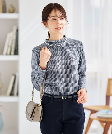 チェックジャカード ハイネックプルオーバー 7,700円(税込) ネイビー 詳しく見る