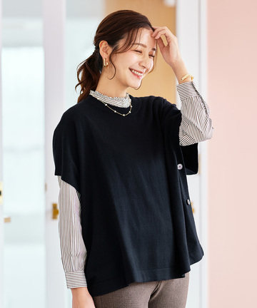 ウールブレンド ポンチョ風 ニット ベスト【手洗いOK】 9,900円(税込) 4,950円(税込) ブラック 詳しく見る
