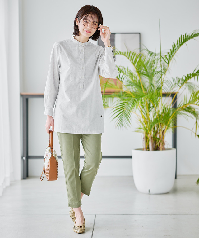 ストライプ切り替え バンドカラー チュニック【オンラインショップ・一部店舗限定】 9,900円(税込) グレー 詳しく見る