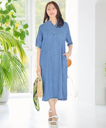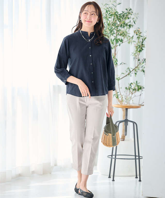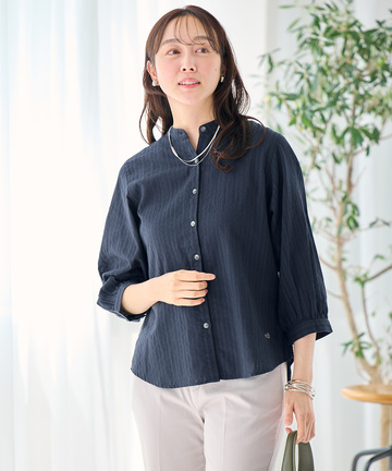 パナマストライプ バンドカラー ブラウス 9,900円(税込) ネイビー 詳しく見る
